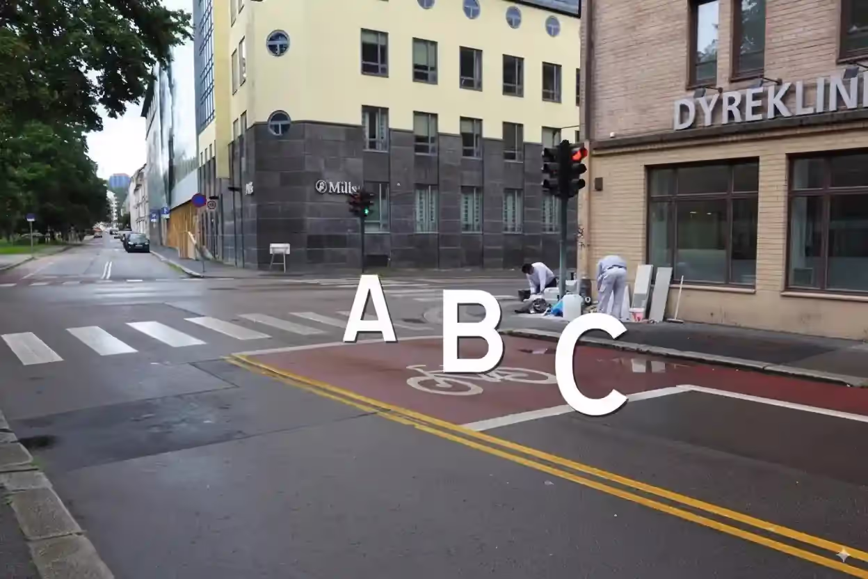 Ett svarDu skal rett fram i krysset. Hvor skal du stanse?